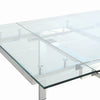 This glass and polished chrome dining table is sure to make a striking addition to your dining room Two leaves extend the table from 62 to 865 inches to accommodate your most impressive spread of dishes drinks and dcor All hardware beneath the table remains fully visible to give the composition a cool industrial look