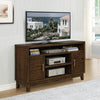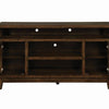 60 TV console finished in rustic mindy Constructed with acacia MDF and mindy veneer Features six 4 open storage compartments and an adjustable shelf behind both doors Metal handles finished in brushed nickel Maximum TV size bezel included 70 Also available in 84W 704243