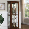 Your most prized accessories will be on prominent display with this beautiful casual curio cabinet A thin wood frame in a warm brown finish leaves most of the curios exterior as glass panels Prime for viewing what you choose to display on the five shelves inside