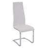 Sleek smooth and perfectly curved to support the body this dining chair is more than just a chair It is a work of art that will add design and style to your dining room The way in which the chrome base curves from the floor up to support the seat cushion without the use of back legs is unique and stunning Upholstered in a crisp white faux leather the shapes and colors of this chair lend well to the contemporaryinspired design