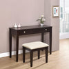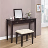 This lightscaled vanity and stool is the perfect fit for a small bedroom or bathroom Two drawers provide a place to keep the essentials for getting ready Lift the vanitys top to find a mirror and reveal additional space to store items Fold it down again when youd like to save space This vanity comes with a stool upholstered in a beautiful cream fabric