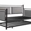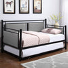 • Twin size daybed upholstered in grey fabric with metal frame finished in black• Constructed with steel and MDF• Trundle included• Slat kit included