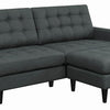 This sofa from the Kesson Collection will add cool sophistication to your modern living room setup Upholstered in an charcoal linenlike fabric with dark brown finish wooden legs this sofa evokes retro vibes with its tufted seat and back cushions This casual yet stylish piece also features reversible cushions to extend the longevity of the piece