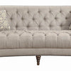 Youll love the charm and personality this Avonlea sofa brings to your semiformal living space Defined by a curved back that forms a slight Ushape this sofa is upholstered in a cool beige fabric with button tufting along both the back and seat Two rows of nailhead trim add definition to the sofas exterior edges Built to accommodate seating for two to three let this sofa can be centerpiece of your living room Matching loveseat and chair sold separately
