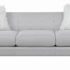 Furnishing a modern-inspired living room? You'll adore this light grey double cushion shelter arm sofa from the Hemet Collection ! This sofa combines a thin exterior frame with three plush seat cushions to strike a balance between minimalist style and comfort. The sofa's back features subtle button tufting for an added touch of style. The sofa is supported by four silver tapered legs.
