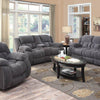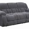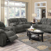 Lounge the night away in this cozy reclining sofa from the Weissman Collection. This casual grey sofa features plush scoop seating to hug you in. A cushioned seat back and headrest contribute to the luxuriousness of this sofa. Quickly switch from sitting to lounging in the two reclining seats.