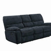 • Motion sofa upholstered in navy blue performance chenille• Wall hugger mechanism• Sofa features drop-down table with storage pocket and two (2) cup holders• Pocket coil seating• 1” 3.0lbs cool gel memory foam topper