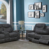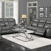 Motion collection upholstered in grey breathable performance polyurethane Wall hugger mechanism on sofa Sofa features dropdown table with popup power outlet 2AC2USB two 2 cup holders and storage drawer Loveseat console features softclosing lift top storage with power outlet 2AC2USB and two 2 cup holders with removable stainless steel inserts and storage drawer Pocket coil seating 1 30lbs cool gel memory foam topper Set includes sofa and loveseat