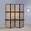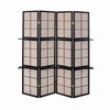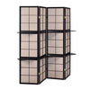 Whether you need to block out light from a window or create a separation in a room this screen can be the stylish solution youre looking for Four beige panels with a cappuccino frame fold in either direction allowing for flexibility in how the screen will stand An unexpected addition can be found in the form of two shelves that run the length of the panel This screen is sturdy in construction so that you can place pictures or small accessories on its shelves