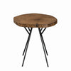 Nature in its pure form is always a beautiful work of art as is evidenced in this beautiful accent table Designed to look as if it were just cut the tables top is a quirky piece finished in brown Four slim legs with an outward angle support the top while still letting it be the main attraction This table is perfect for sitting up next to your sofa or chair