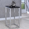With square frame sporting oval design elements this contemporary accent table adds a great design aesthetic to any space A brilliant chrome base gives a shine of color to the table while a square glossy black top offers a nice contrast to the base The simplistic design and coloring of the piece makes matching it to your existing decor simple