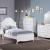 Gentle curves and flared legs give the Dominique Collection a fun aesthetic that merges classic cottage style with modern sensibility The clean white finish ensures this set will look great with a variety of dcor themes even as your tastes change over time This set includes a fullsize bed a dresser with matching mirror and convenient singledrawer nightstand