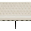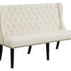 Enjoy timeless style and dependable comfort with this traditional cream bench from the Mapleton Collection This piece brings contemporary flair to classic features the wingback design the border of decorative nailheads and the deeply tufted back are all brought up to date with striking modern construction Use at a dining table entryway or anywhere that compact yet cozy seating is desired