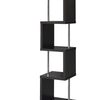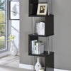 Your standard bookcase just doesnt stack up when it compares to this modern piece Available in a sleek black finish this bookcase features four tiers stacked together with chrome metal bar accents Add this conversation piece to your office for organization and style This bookcase is also available in a bright white finish
