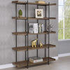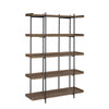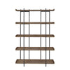 Mid century modern bookcase finished in aged walnut Sturdy frame finished in black Features five 5 shelves Metal MDF particle board and laminate construction