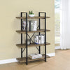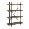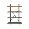 Bookcase finished in rustic oak Metal frame finished in black Constructed with metal MDF particle board and laminate Four 4 tiers of open shelving