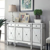 This glamourous wine cabinet features a removable wine holder mirror panels and plenty of storage space The piece features four doors three drawers three shelves and a matching removable wine holder The mirror paneling will make this piece a focal point in any space