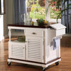 Keep everything you need to bake a great meal for family in one spot with this kitchen cart. Two cabinets and one drawer provide a lot of space to keep pots and pans. The open shelf is a perfect place for storing plates. A cherry veneer top is beautiful and functional for meal prep. Need to move to another part of your kitchen? Simply roll this cart with you on its four caster wheels.