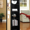 This sleek black accent cabinet offers plenty of storage and functionality With five shelves for storage a corkboard on one side and a fulllength mirror on the other this accent cabinet adds much versatility to your space A swivel on the bottom brings even more to the design which makes placing this cabinet in your home easy