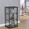 With a contemporary style this minimalistic curio cabinet offers clean lines and an allaround glass display Glass shelving and display panels with the black frame offer simplistic design that can easily match a variety of design styles Adding to the simplistic design are clean pushtoopen doors