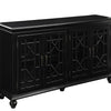 Store your best dishes behind glass doors with this fourdoor accent cabinet While the glass doors provide a peek at what is inside a welldesigned wood overlay adds interest to the doors Tulip feet support the cabinet and add a traditional touch With the black finish this cabinet goes well in a living or dining space
