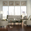 Enjoy the midcentury modern style of this adorable accent chair in dove grey chenille fabric Built to serve as a comfortable reading or lounge chair this cozy accent features padded arms and tufting on both the seat and backrest cushions This sofas streamlined aesthetic is complemented with four thin angled wood legs in cappuccino The perfect furniture addition to a home office