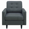 The Kesson Collection features midcentury modern styling soft fabrics and a solid construction making the set a great option for your living room needs The charcoal linenlike fabric upholstery offers a beautiful color option bringing a dark calming feel to the room With a hardwood frame and tapered solid wood legs stability and durability were builtin to the piece Elegant tufting rounds out the design aesthetic