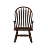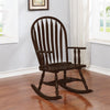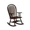 Rock in comfort with this traditional rocking chair Features include a rounded back and arrow slats perfectly curved to add comfort Turned legs and arm slats add a touch of interest With its classic look and style this rocking chair can be an addition to both rustic and contemporary spaces