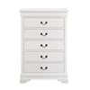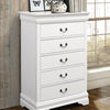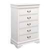 Classic style such as this Louis Philippe FiveDrawer Chest has no limitations From its fivedrawer ample storage to the intricate wood detailing within its white finish this chest stands out as a traditional piece for your wardrobe needs Silver bail drawer handles complete the classic look