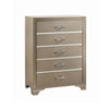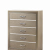 The Beaumont Collection is sure to impress with transitional glam style sparkles and plenty of bling The fivedrawer Beaumont Champagne Dresser features stingray embossed drawer fronts acrylic mirror accent feltlined top drawers and polished chrome pull handles with added sparkle Constructed to be glamourous and durable for many years of use