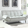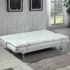 This sofa bed portrays a soft inviting design which is perfect for a casual living space Oversized and large in scale this sofa bed also sports an inviting pillowtop cushion Upholstered in white faux leather with an added touch of rugged doublestitched seams The arm rests are adjustable for a custom fit Fold down the back frame to convert the sofa into a bed