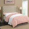 Get a restful nights sleep every night in this beautiful upholstered queen bed from the Benicia Collection Constructed with a pine and plywood grey frame this demiwing queen bed is upholstered in a beige woven fabric with button tufting on the headboard Individually applied bronze nailhead trim completes the elegant look A box spring is required for this bed
