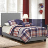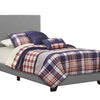 Liven up your bedroom space with this upholstered twin bed from the Dorian Collection With a rubber wood and plywood frame this twin bed is upholstered in a grey faux leather fabric A box spring is required for this piece This twin bed is also available in black and brown faux leather fabrics