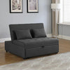 • Sleeper sofa bed upholstered in grey linen-like fabric• Tufted seat and back• Easy-to-use pull-out sleeper mechanism• Two accent pillows included• Kiln-dried hardwood frame• Durable sinuous spring decking with high resilience foam seat