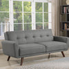 This grey sofa bed takes inspiration from an earlier era with its midcentury modern details Constructed with a fully encased kilndried hardwood frame this sofa bed is upholstered in a grey fabric with button tufting on the back Pocketcoil seating and sinuous spring deck offer longlasting comfort Solid hardwood tapered legs in a walnut finish complete the look of this sofa bed
