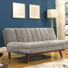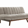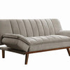 • Mid century modern style sofa bed upholstered in beige performance microvelvet• Adjustable armrests for added comfort• Padded pillow-top cushion with channeled detail• Back folds flat for easy conversion from sofa to bed• Kiln-dried hardwood frame• Durable sinuous spring decking with high resilience foam seat• Tapered solid hardwood legs in walnut finish• Also available in charcoal (#360242)
