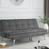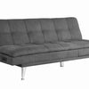 Convertible sofa bed upholstered in grey corduroy Pillowtop cushion with tufted seat and back Builtin power outlet 2AC2USB Easily convert between sofa chaise and bed Kilndried hardwood frame Durable sinuous spring decking with high resilience foam seat Metal legs electroplated in chrome