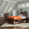 A spectacular storage solution for small spaces this twin bed features a variety of nooks and crannies to keep any bedroom organized The headboard offers small cubbies ideal for essentials like an alarm clock favorite bedtime books and everyday devices In the base larger cubbies and pullout drawers offer spacious storage for bulky items and extra linens