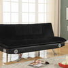 Add a bit of tech to your sofa to bring your casual seating experience into the next century This comfortable sofa bed offers Bluetooth or auxiliary connection to builtin speakers With a sturdy wood frame construction metal legs and a sinuous spring base this sofa bed is built to last The two different upholsteries coupled with the back and seat tufting bring elegance to the piece Contrasting chrome legs round out the sofa