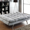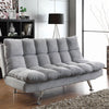 Overstuffed cushions and a smooth curve from the seat to the back make this sofa bed so comfortable your guests may not want to leave But that is not a problem as you can easily fold the back frame down to create a sleeping area Your friends will also be impressed with your sense of design and style as this sofa bed is upholstered in a great transitional grey fabric and supported by four chrome legs