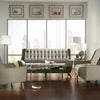 Enjoy the midcentury modern style of this adorable sofa in dove grey chenille fabric Built to comfortably seat between two and three this cleanedged sofa features padded arms and tufting on both the seat and backrest cushions This sofas streamlined aesthetic is complemented with four thin angled wood legs in cappuccino