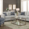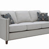 This transitional sofa from the Coltrane Collection showcases stylish track arms outfitted with two rows of metal nail head trim along its edges. The sofa's neutral putty tone fabric makes this an excellent choice for those with brighter accent décor! The sofa comes with three fully-reversible seat cushions and three fully-reversible back cushions. Find longevity and support thanks to this sofa's spring base construction and pocket coil springs.