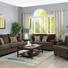 The Griffin Casual Brown Sofa will offer endless comfort in your living room space Constructed with a fully encased solid wood frame and wood legs this sofa is covered in a plush brown chenille fabric Widetrack arms offer contemporary style and pocketcoil springs maintain the shape and durability of this piece Four accent pillows are included with this sofa Pair this sofa with the loveseat and chair from this collection for a cohesive living room look
