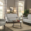 Looking for a beautiful sofa in an apartment size Look no further than this Baby Natalia MidCentury Modern Sofa This sofa takes notes from earlier decades with tufted seating in a dove grey chenille upholstery and cappuccino leg finish Wood frame is built in sturdy construction for stability and heavy use This midcentury modern sofa will inspire without overpowering your living room