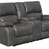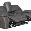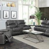Add exceptional comfort to any space with the wallhugging Ravenna Casual Charcoal Power Loveseat featuring a classic look in rich grey faux leather accented by chrome nailhead trim This piece offers years of comfort with its kilndried hardwood frame dual power recline and memory foam topper This piece also features a center console with two cupholders and a softclosing lifttop storage To create a cohesive look pair with other pieces in the Ravenna line to enjoy the dynamic look and unparalleled comfort of a qualitymade piece