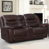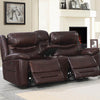 • Power motion loveseat upholstered in brown top grain leather everywhere the body touches• Two (2) power reclining seats with power headrest• Wall hugger mechanism• Switch panel with 2.1A USB and home button• Console features soft-closing lift top storage with power outlet (2AC/2USB) and two (2) cup holders with removable stainless steel inserts• Pocket coil seating• 1” 3.0lbs cool gel memory foam topper