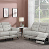 • Power motion collection upholstered in beige top grain leather everywhere the body touches• Wall hugger mechanism• 2-over-2 sofa configuration• Switch panel with 2.1A USB• Full foam seating• 1” 3.0lbs cool gel memory foam topper• Certi-Pur certified foam• Tapered solid birch wood legs finished in black• Set includes sofa and loveseat