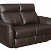 With its rich brown faux leather dual power recline and power adjustable headrest the Scranton Casual Dark Brown Power2 Loveseat offers unparalleled comfort in a classic sleek design The Scranton line offers a versatile transitional look to complement almost any style The kilndried fully encased hardwood frame provides exceptional durability while the wallhugging recline mechanism allows this piece to fit in nearly any room Build your ideal living room suite with other pieces from the Scranton Collection and enjoy years of durable longlasting comfort