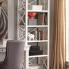 Display your favorite books and decorations in style on this transitional bookcase by Available in an antique white finish this bookcase features Xshaped sides for added character Four sturdy shelves let you position your favorite collectibles across multiple levels of style