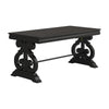 Writing desk finished in coffee Constructed with poplar resin MDF and pine veneer Spanish traditional inspired design One 1 felt lined drawer with full extension glides